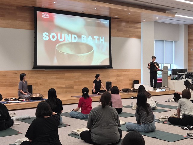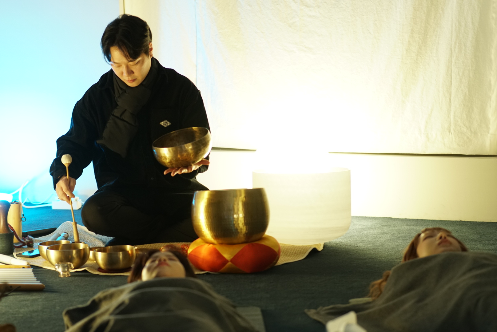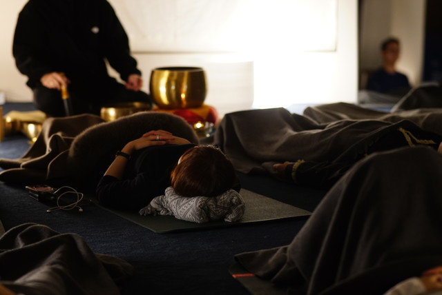 소리 목욕이라고 불리는 사운드 배스는, 다양한 소리를 주의 깊게 들으며 깊은 이완을 경험하는 명상입니다. 싱잉볼에서 나오는 소리와 진동이 몸 전체에 전달되어 깊게 이완하는데 도움을 줍니다.